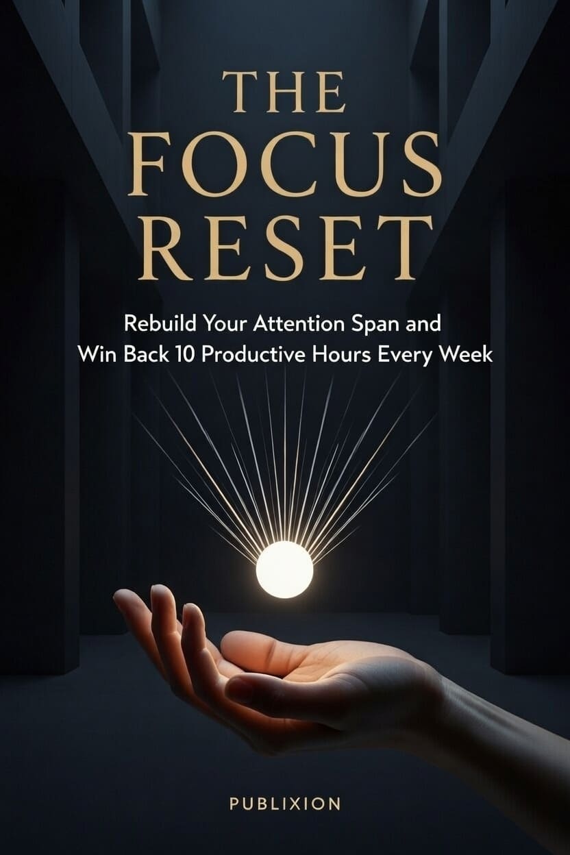 Stop white-knuckling your way through a distracted workday. The productivity advice you have already tried failed not because you are undisciplined but because it never addressed the actual problem: your environment is engineered against your focus, your dopamine system has been recalibrated by years of digital overstimulation, and no amount of willpower can sustainably fight both of those forces at once. The Focus Reset is a complete, science-backed cognitive reconstruction system built around the C.L.E.A.R. Protocol — five sequential stages that address the root causes of distraction at every level simultaneously: environment, neurology, scheduling, attention capacity, and identity. Not a tip. Not a hack. A system. In thirty days, you will redesign your digital and physical environment so that deep work becomes the path of least resistance. You will complete a 14-day dopamine recalibration that makes sustained, difficult work feel genuinely rewarding again — restoring the neurological baseline that years of scrolling quietly destroyed. You will build a scheduling architecture that aligns your most cognitively demanding work with your brain's natural peak performance windows. You will train your attention span progressively, from 25 minutes to uninterrupted 90-minute flow states, using the same deliberate practice principles that govern elite performance in every field. You will eliminate multitasking permanently with a five-rule operating system proven to reduce cognitive switching cost by up to 40%. And you will build a focused identity so durable that it stops requiring willpower to maintain and becomes simply who you are. The neuroscience is real. UC Irvine, Stanford, Harvard, McKinsey — the research that underpins every protocol in this book is cited, explained, and translated into action you can take tomorrow morning. The results are measurable from the first week. This is not the book that tells you to wake up earlier or try harder. This is the book that rebuilds the system so that trying harder stops being necessary. Published by Publixion | Publixion.com